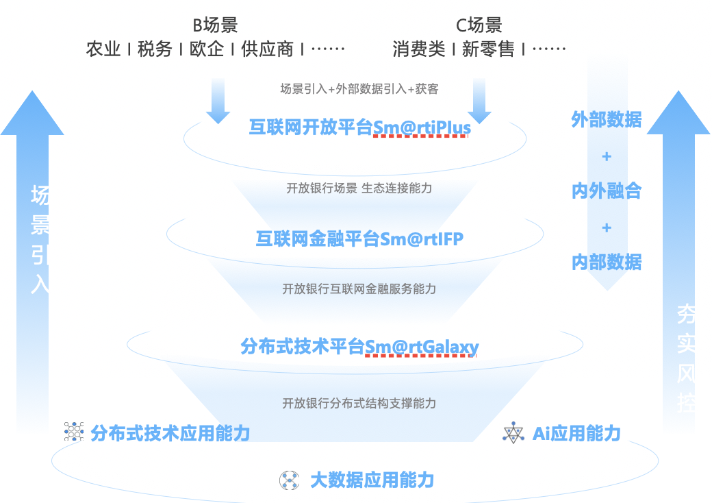 神州信息于 2015 年正式推出的分布式技术平台 Sm@rtGalaxy,以及新一代 IT 应用架构体系 ModelB@nk4.0,2016 年在国内推出了第 1 个成熟商用分布式核心业务系统,首次将分布式、微服务、云原生引入核心业务系统,为国内银行核心的分布式架构转型、主机下移趋势铺平了技术道路,让银行的金融服务足以开拓更多可能性。
