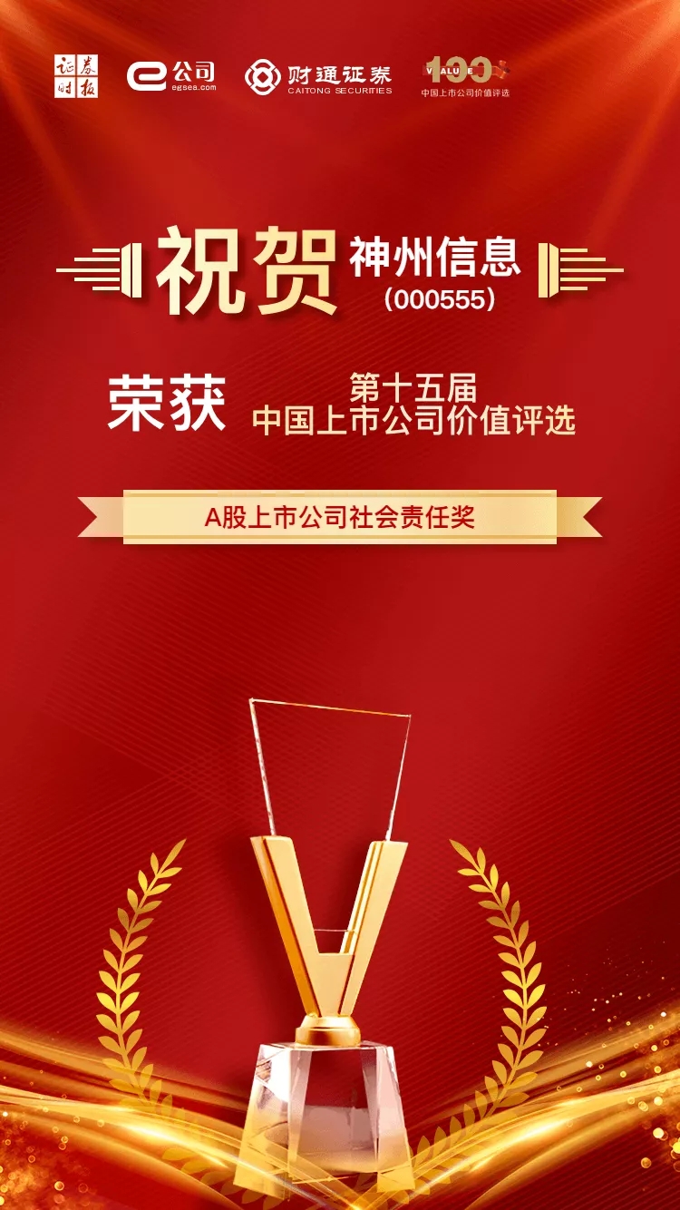 由证券时报社主办、财通证券特约协办的“第十五届中国上市公司价值评选”榜单近日揭晓。神州信息获得“A股上市公司社会责任奖”。