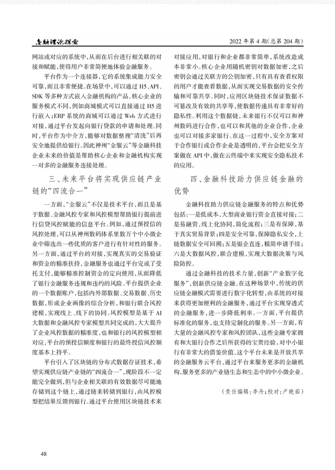 神州信息撰写的《数字科技与供应链金融创新》于2022年第4期刊载。