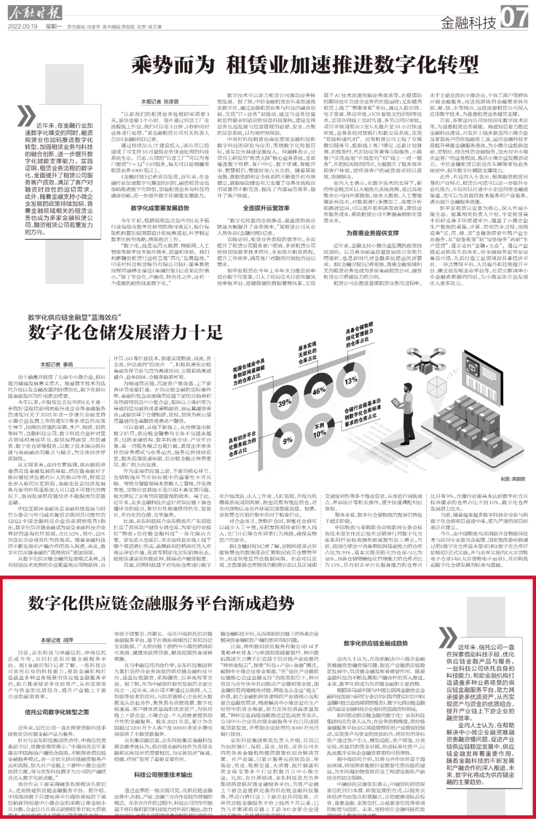 业内人士认为,在帮助解决中小微企业融资难融资贵融资慢问题、促进产业链供应链稳定发展中,供应链金融发挥着重要作用。随着金融科技的不断发展和产融合作的深入推进,未来,数字化将成为供应链金融的主要趋势。