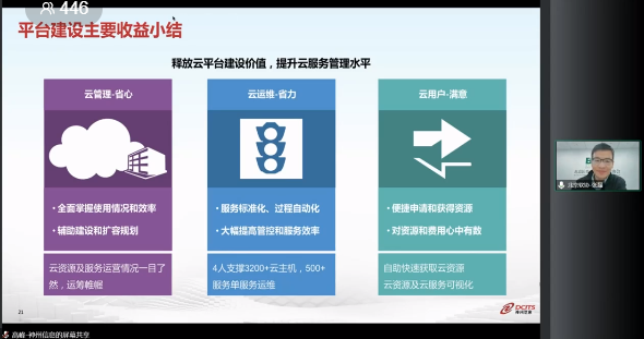 通过神州信息提供的解决方案,客户实现了异构云资源、IDC资源、GPU、裸机、专线统一管理;全资源服务化,服务申请自助化规范化,兼顾规范和个性化;审批过程线上化,服务过程数字化,管理数据可视化;资源统一监控和运维管理,监控运维集中化,可视化;统一计量计费、成本分析和持续优化,提升效率降低成本;租户配额管理及自助管理,简化过程,提升整体运营水平。综上,神州信息综合资源管理平台为客户实现了云管理省心、云运维省力、云用户满意的优异成效。