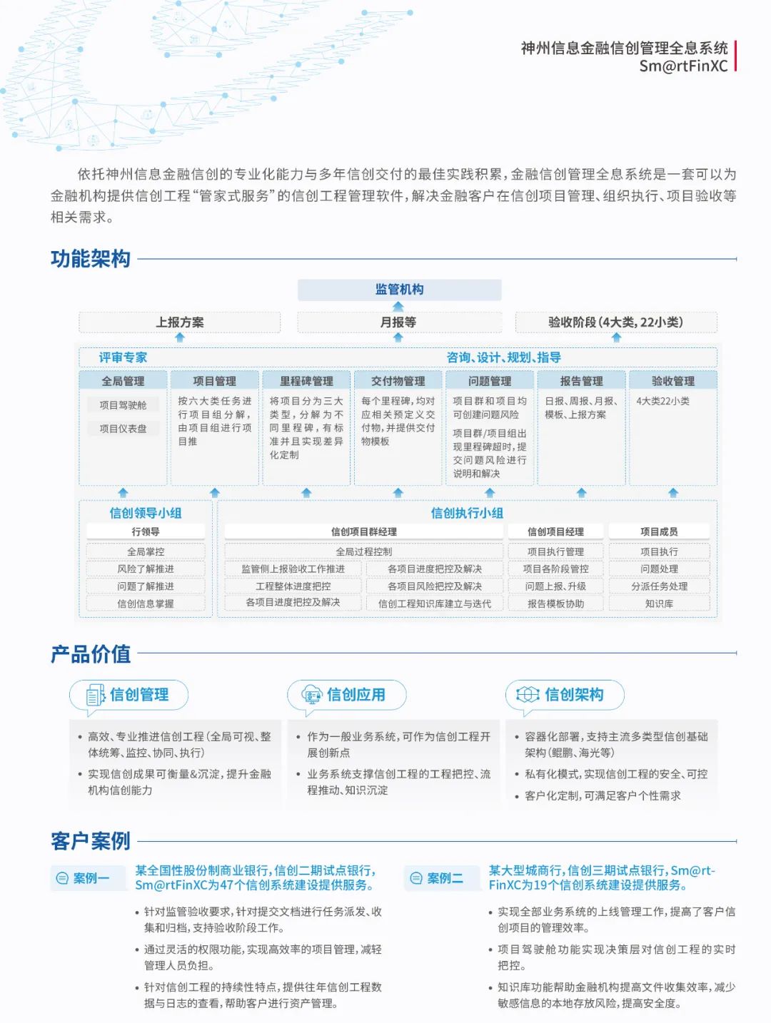 FinTech产品 | 神州信息金融信创管理全息系统Sm@rtFinXC
