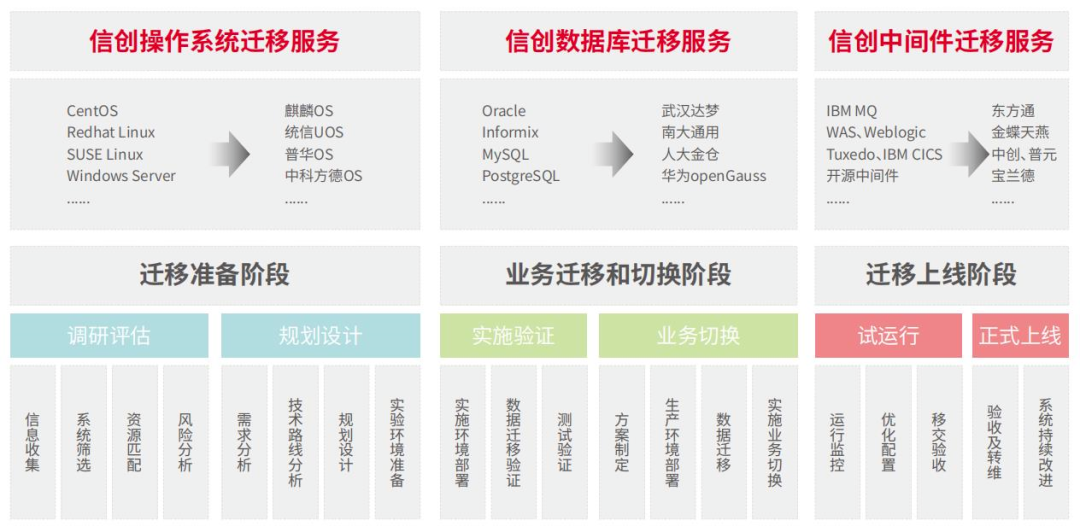 神州信息信创平台迁移服务,通过一体化系统迁移解决方案,帮助用户进行信创平台软硬件迁移。协调主机、操作系统、存储、网络、数据库、中间件、应用等各领域专家,共同制定迁移策略,制定完备的迁移计划,在保证迁移安全的前提下减少关键系统的停机时间。组织迁移人员高效、准确地执行迁移计划,在迁移的同时,对新系统平台进行优化与设计。