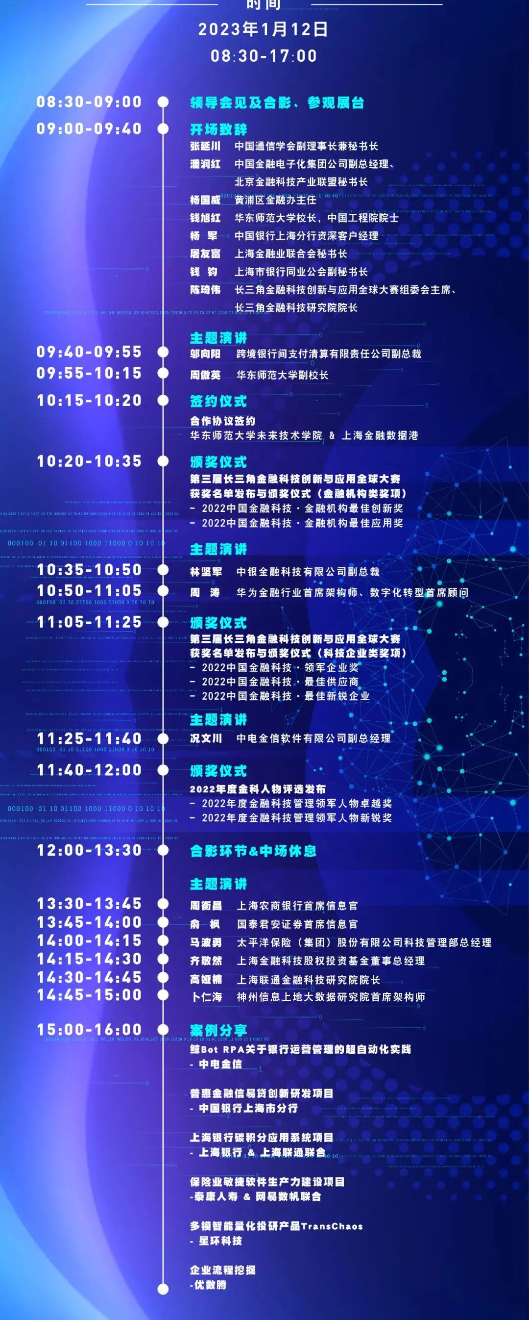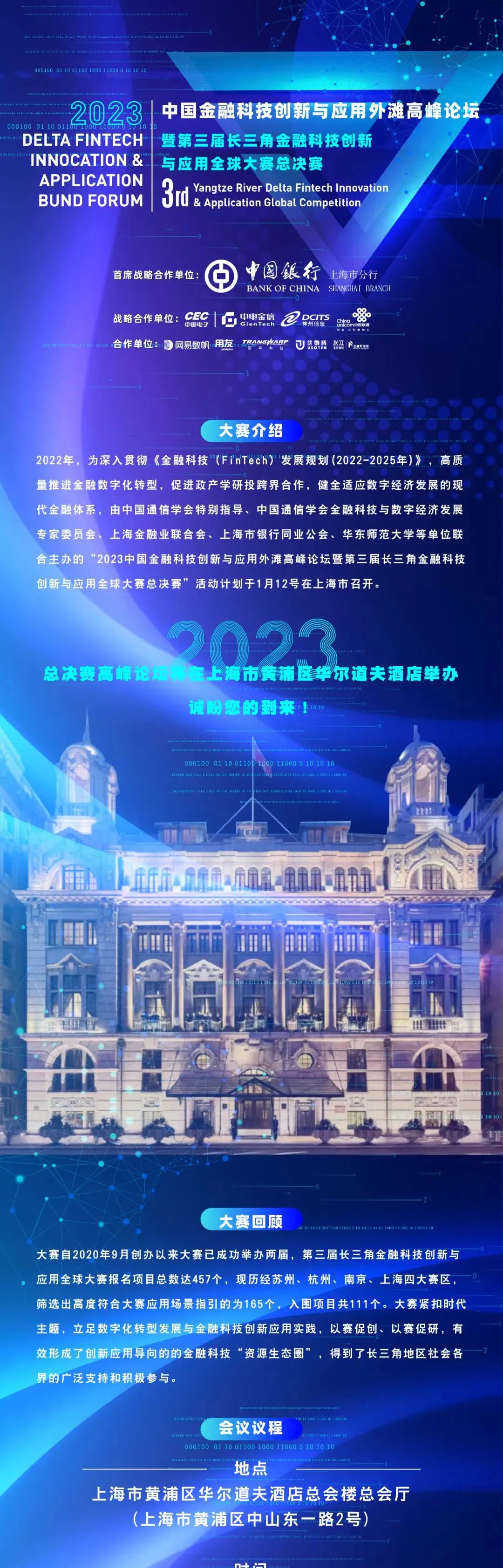 由中国通信学会特别指导、中国通信学会金融科技与数字经济发展专家委员会、上海金融业联合会、上海市银行同业公会、华东师范大学等单位联合主办的“2023中国金融科技创新与应用外滩高峰论坛暨第三届长三角金融科技创新与应用全球大赛总决赛”活动计划将于明日在上海市召开,神州信息作为战略合作单位将出席会议,并由神州信息上地大数据研究院首席架构师卜仁海做主题演讲。