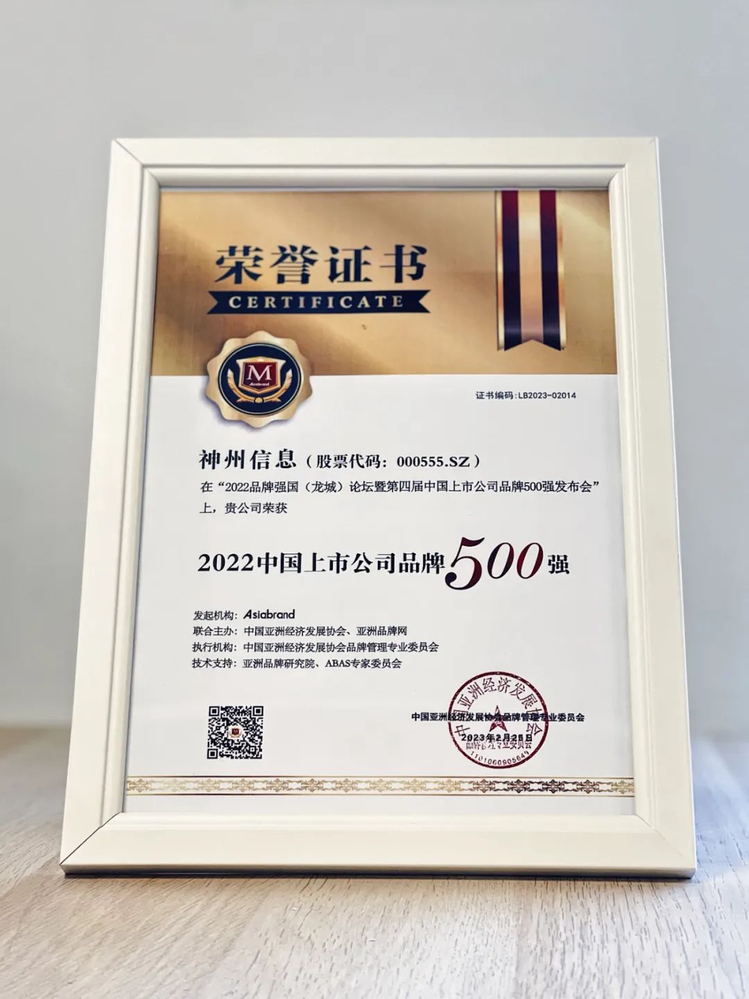 神州信息获“2022中国上市公司品牌500强”