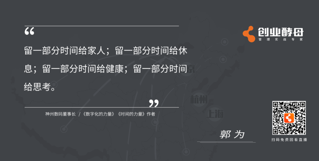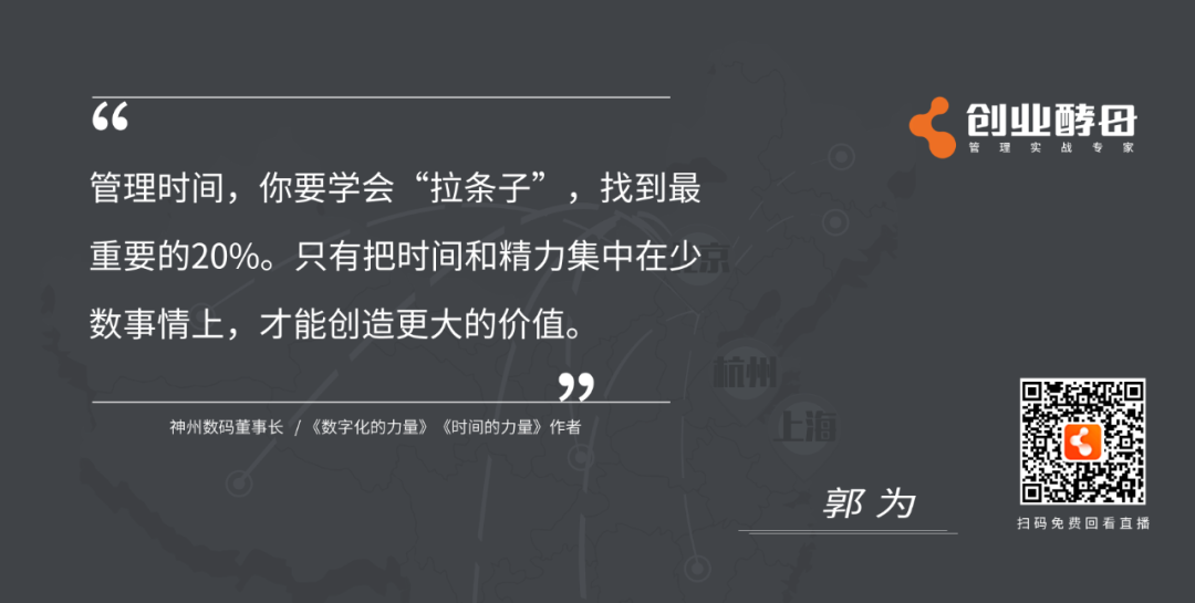 导语:时间管理,之于企业,之于人生有什么意义?如何做好时间管理?如何把时间花在最重要的战略管理上?如何以时间管理打造组织领导力?……在5月16日,350vip浦京集团与创业酵母联合举办的《时间的力量——企业时间管理实践与思考》直播对谈中,神州信息董事长、《时间的力量》作者郭为与创业酵母创始人张丽俊围绕“时间管理、战略管理、组织变革、团队管理、领导力”等话题深度探讨,以下为直播内容精选。