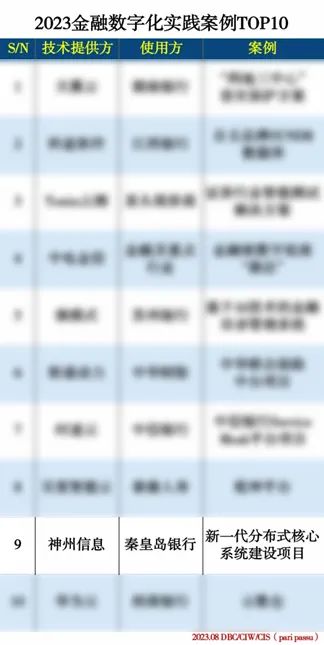 8月10日,由中国社会科学院信息化研究中心、中科院《互联网周刊》共同推出的“2023金融数字化实践案例TOP10”正式发布。由神州信息参与建设的秦皇岛银行新一代银行核心业务系统获评入选。